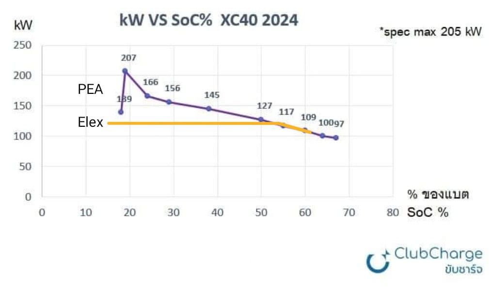 – PEA Volta บาลีฮาย พัทยา รถรับได้เต็ม max ที่รถรับได้ในช่วงต้น ในเวลาสั้นๆ และกราฟ kW ตกเป็นเส้นตรง