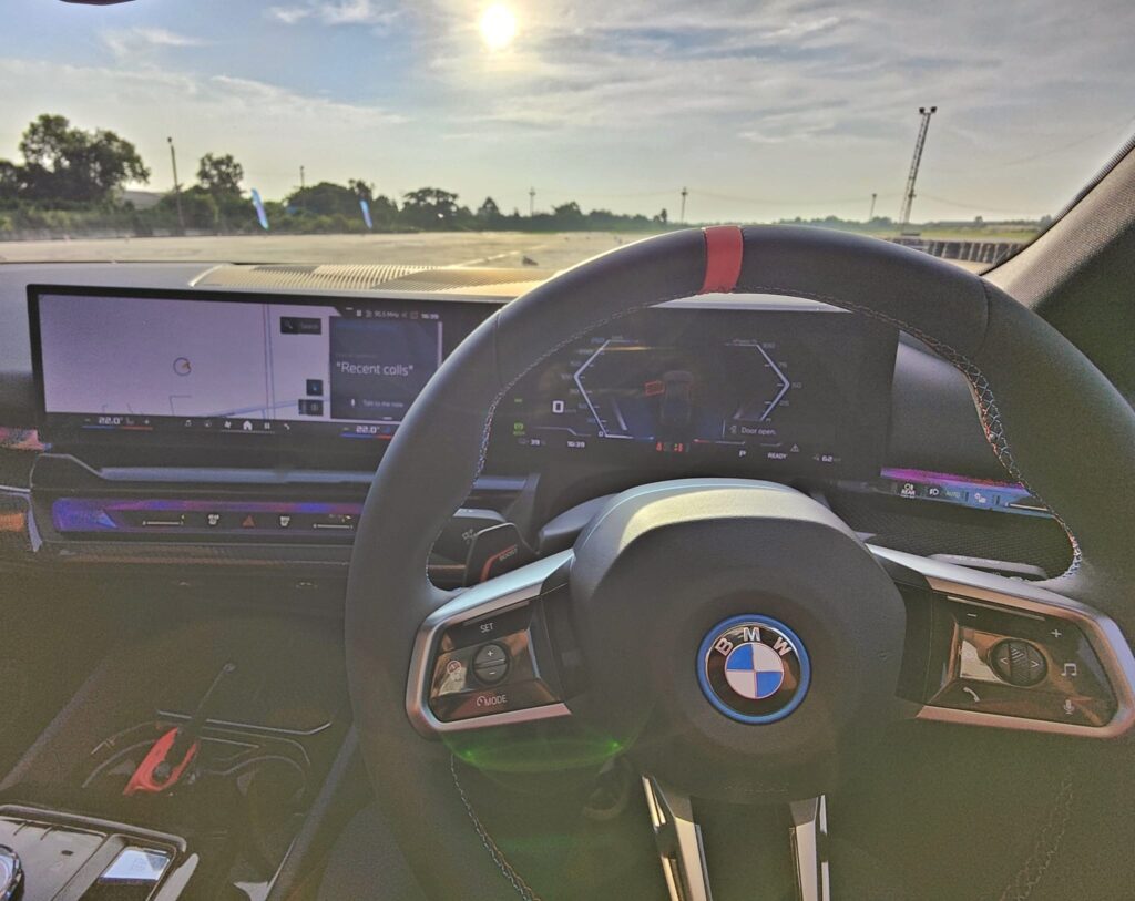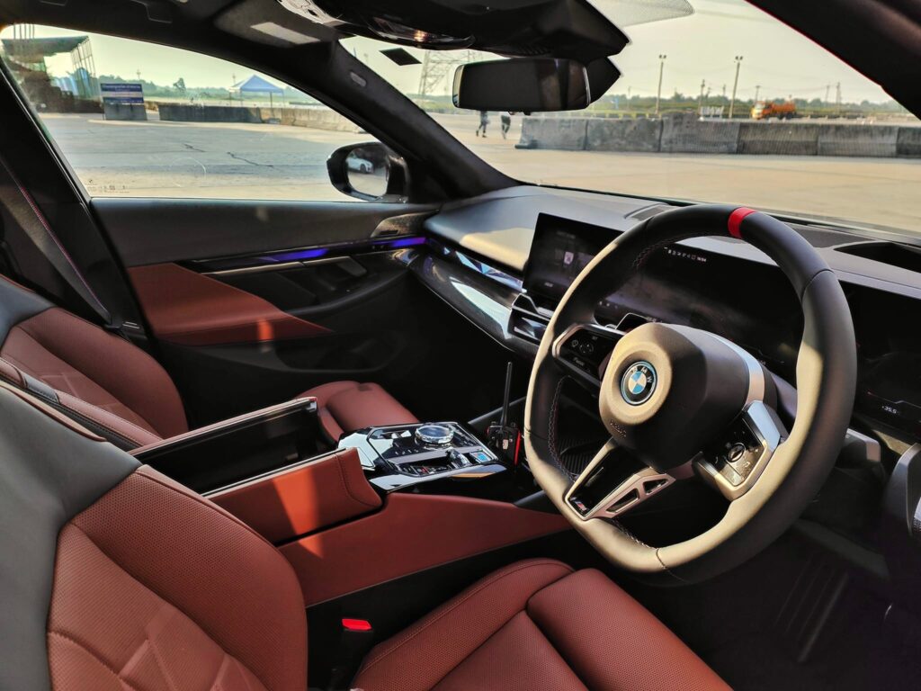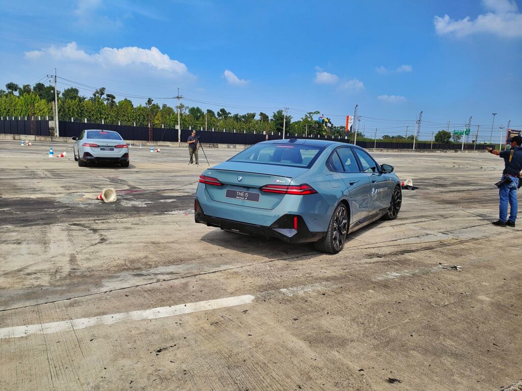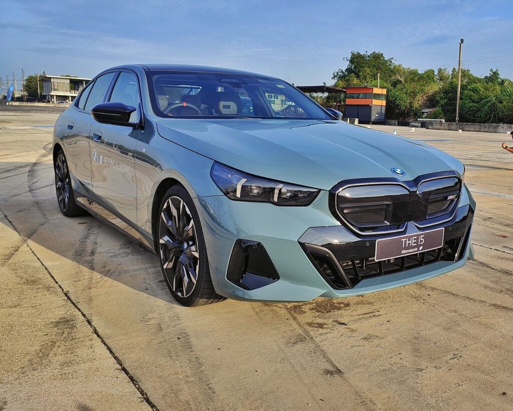 เมื่อช่วงปลายปี 2023 ผมได้มีโอกาสลอง BMW i5 M60 xDrive สั้นๆ ในสนามปทุมธานีสปีดเวย์ โดยทาง BMW จัดพื้นที่ให้ลองครบทั้ง slalom ซิกแซก, เข้าโค้ง, ทดสอบ lane change และลองอัตราเร่ง ซึ่งตัวรถ i5 นี้ ใช้ช่วงล่างแบบถุงลม Adaptive และมีระบบเลี้ยว 4 ล้อทุกรุ่นย่อย และในรุ่น M60 xDrive เป็นระบบขับเคลื่อน 4 ล้อ 601 แรงม้า มีแรงบิด 795 Nm และเพิ่มเป็น 820 Nm ใน Boost mode